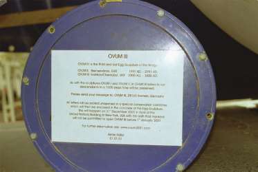 This third egg, 'Ovum III', was built in Bremen, Germany close to a bunker from the 2nd World War. This egg will be moved through the troubled areas of the world, such as Jerusalem, Teheran and Johannesburg. It will finish its trip around the world in New York. There, it will be placed in front of the Headquarters of the United Nations. "In my opinion, this egg should represent the willingness of peace and prosperity of people living in the troubled areas of our time. And it is to be handed over to the men of the future, to help them not to loose the way which leads to peace and co-existence."  |